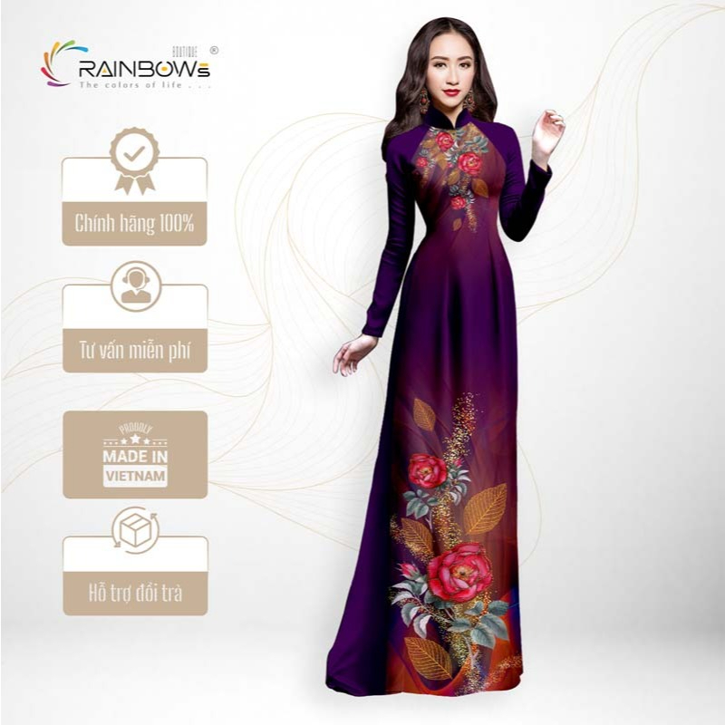 Vải áo dài lụa Latin là loại lụa dệt theo công nghệ hiện đại, kết hợp giữa sợi tổng hợp cao cấp và sợi tơ mảnh, tạo nên một kết cấu vừa mềm mại, nhẹ nhàng lại vừa có độ đứng áo tự nhiên. Khi mặc lên, chất liệu này giúp áo dài không bị nhăn nhúm hay xệ xuống, đồng thời ôm vừa vặn vào đường cong cơ thể mà không quá bó sát.