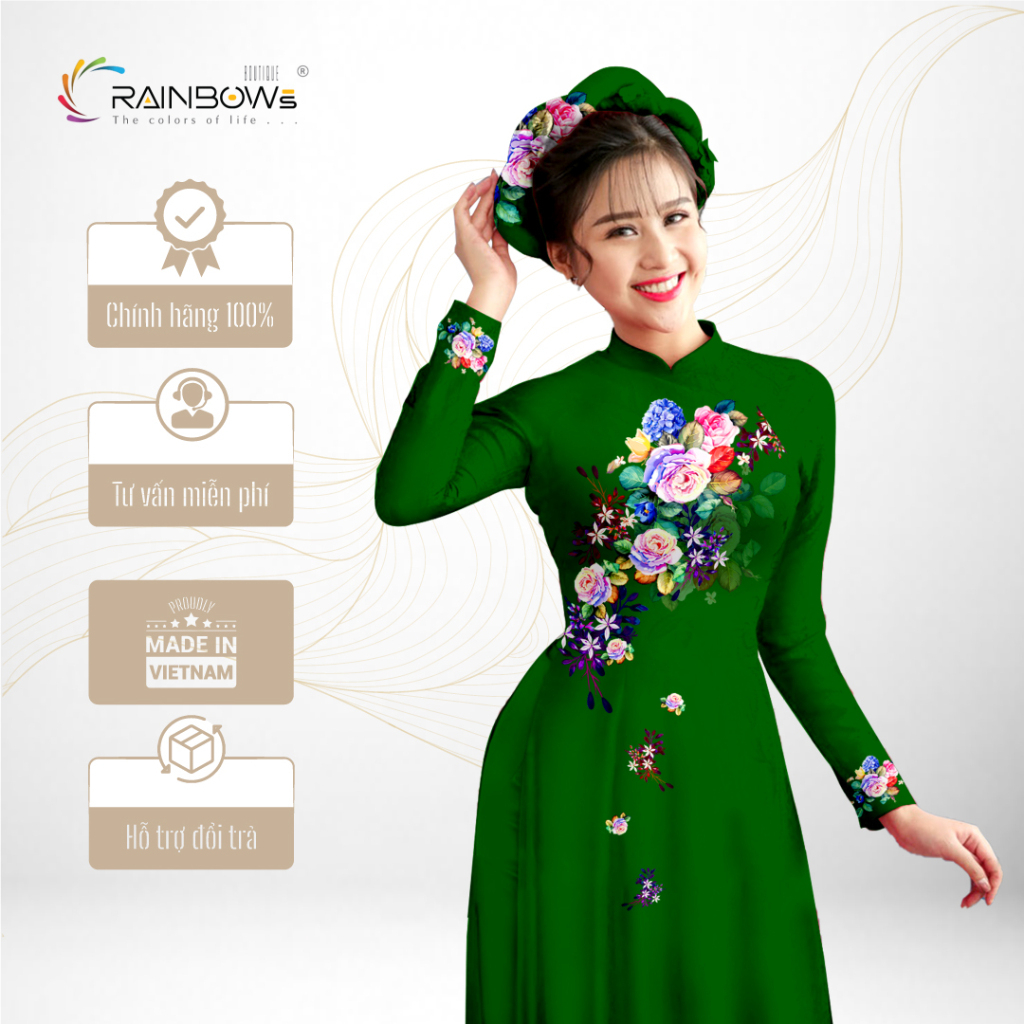- Lụa tơ tằm: Mềm mại, nhẹ tênh, lên màu óng ánh dưới ánh sáng, giúp áo dài trông như một dải lụa hoàng kim sống động.